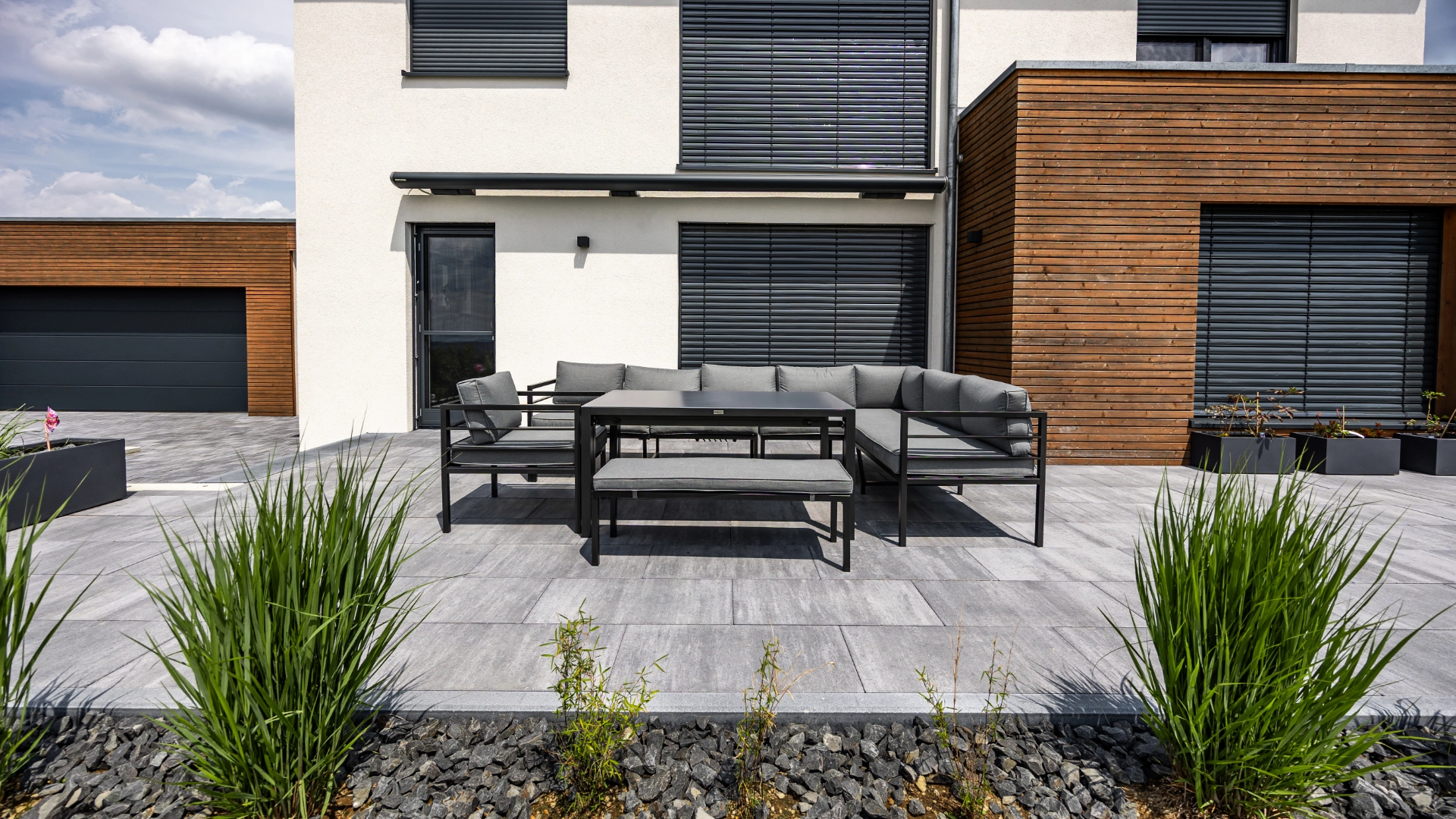 Lamina Platten sind die perfekte Wahl für Terrassenflächen und Gartenwege. Die 5 cm starke Platte ist robust und in vier modernen Formaten erhältlich. Jede Lamina Terrassenplatte hat eine andere Schattierung, wodurch ein abwechslungsreiches harmonisches Farbspiel entsteht.
