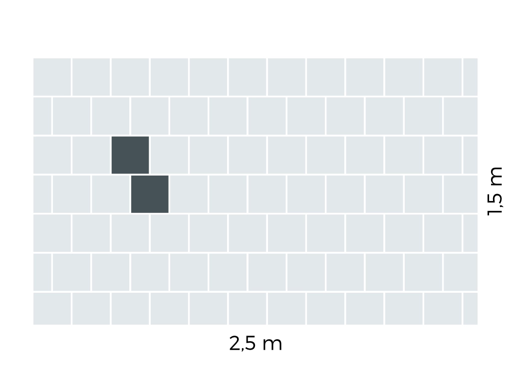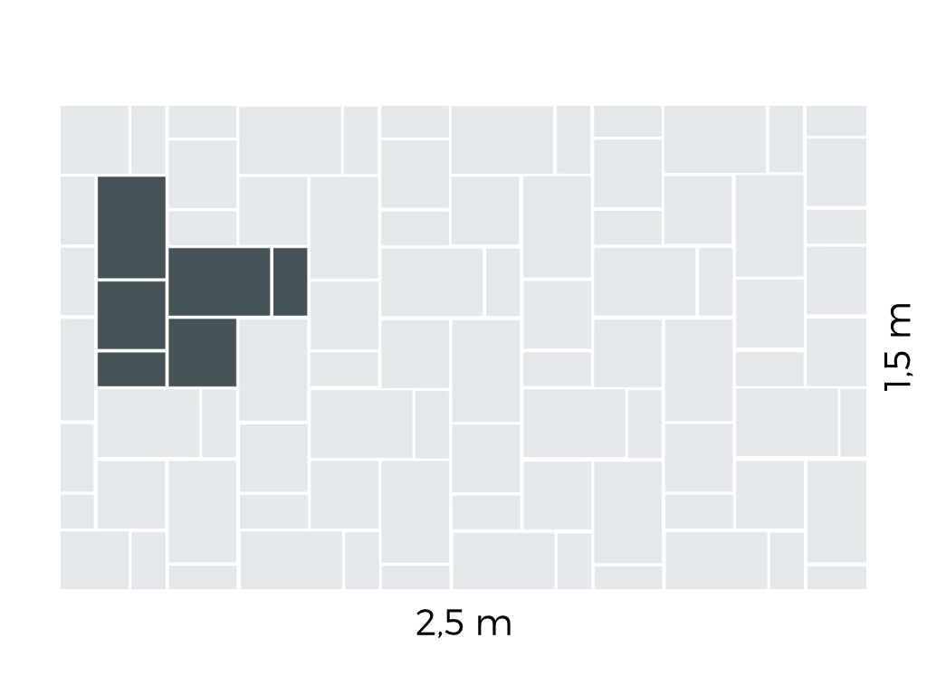 Steinbedarf pro m²: 0,38 St: 63 x 42 cm, 0,15 St.: 42 x 42 cm, 0,45 St.: 42 x 21 cm, 6,25 St.: 31,5 x 21 cm, 7,01 St.: 21 x 21 cm, 5,05 St.: 10,5 x 21 cm